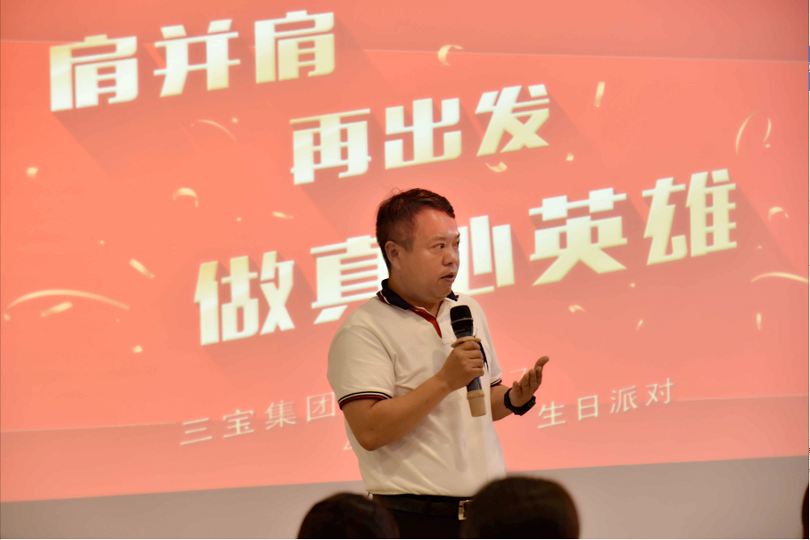 隨后,三寶科技集團(tuán)總裁孫懷東發(fā)表講話,在祝福公司27歲生日快樂(lè)之余,他感慨“自助者天助”,都說(shuō)天佑三寶,但是他看到了公司危機(jī)解決過(guò)程中,全體三寶人表現(xiàn)出的能打仗、打硬仗的良好作風(fēng)。對(duì)于集團(tuán)下一步的工作,他提出了三方面的要求:首先,核心管理層要深刻反思、吸取教訓(xùn),防止重蹈覆轍,不能浪費(fèi)新機(jī)遇;其次,管理層也強(qiáng)化業(yè)績(jī)導(dǎo)向,加強(qiáng)業(yè)務(wù)策劃、落實(shí)能力,要用成績(jī)和利潤(rùn)說(shuō)話;第三,集團(tuán)要聚焦在主業(yè),加大主業(yè)的資源投入,爭(zhēng)取利用三年時(shí)間,實(shí)現(xiàn)集團(tuán)整體價(jià)值的大幅提升。