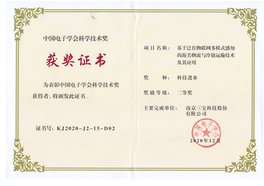 近日,從中國電子學會傳來喜訊,我公司與南京郵電大學等單位聯(lián)合開展的“基于泛在物聯(lián)網(wǎng)多模式感知的海關物流與冷鏈運輸技術及其應用”獲得2020中國電子學會科技進步獎二等獎!受疫情影響,該獎項近日正式頒發(fā)。